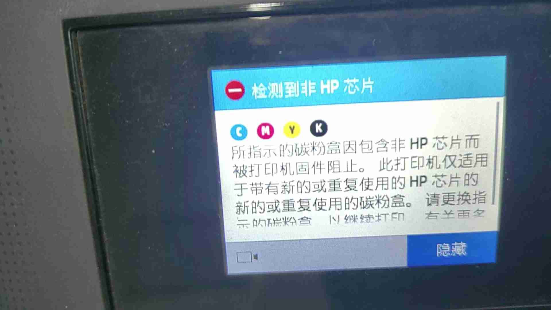 惠普 HP-7720 打印机出现检测到非 HP 芯片提示,机器锁定无法打印,是固件自动升级后启用动态安全锁,阻断第三方兼容墨盒、加墨墨盒芯片识别,并非硬件损坏,按 “墨盒排查→固件降级→关闭自动更新”…