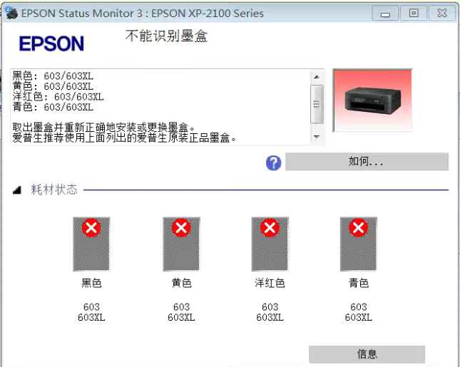 爱普生XP-2100打印机屏幕提示墨盒不识别 如何解决问题